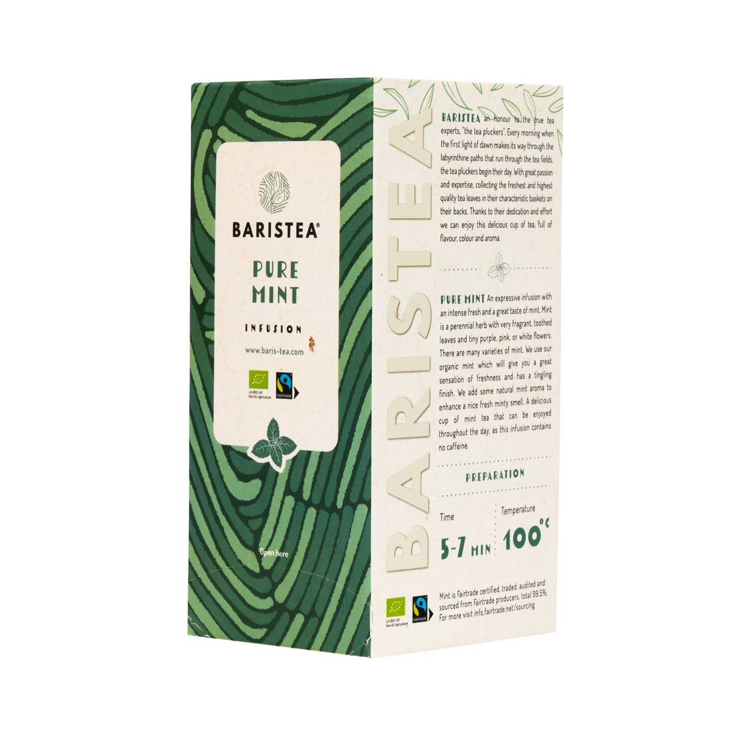 Wir verwenden unsere Bio-Minze, die Ihnen ein tolles Frischegefühl und einen prickelnden Abgang verleiht. Wir fügen etwas natürliches Minzaroma hinzu, um einen schönen frischen Minzduft zu verstärken. Eine köstliche Tasse Minztee, die Sie den ganzen Tag über genießen können, da dieser Aufguss kein Koffein enthält.